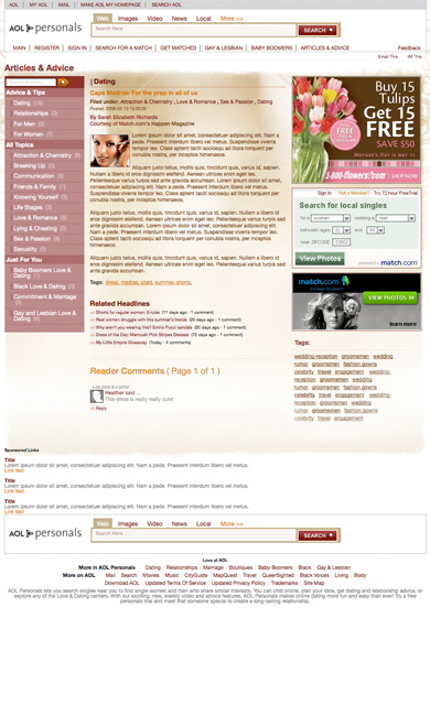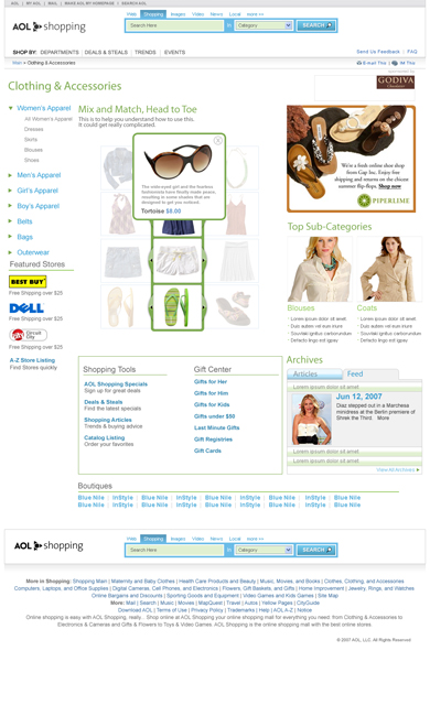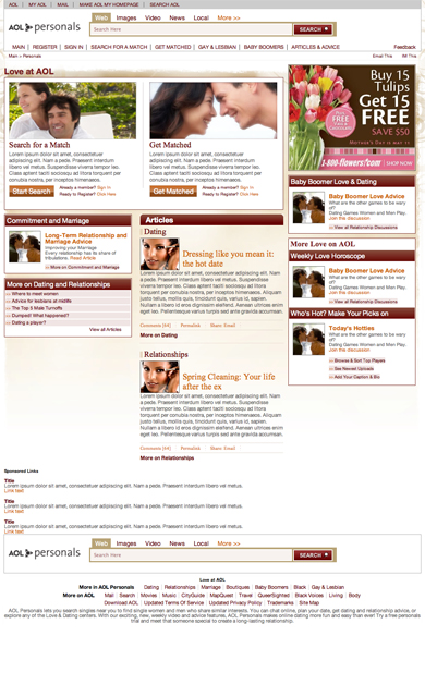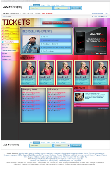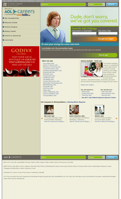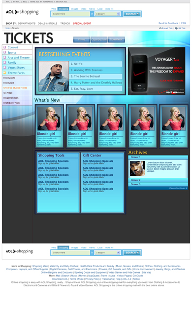 AOL. Leading the creative on the Shopping, Mobile, Careers, and Personals portals. My responsibilities included